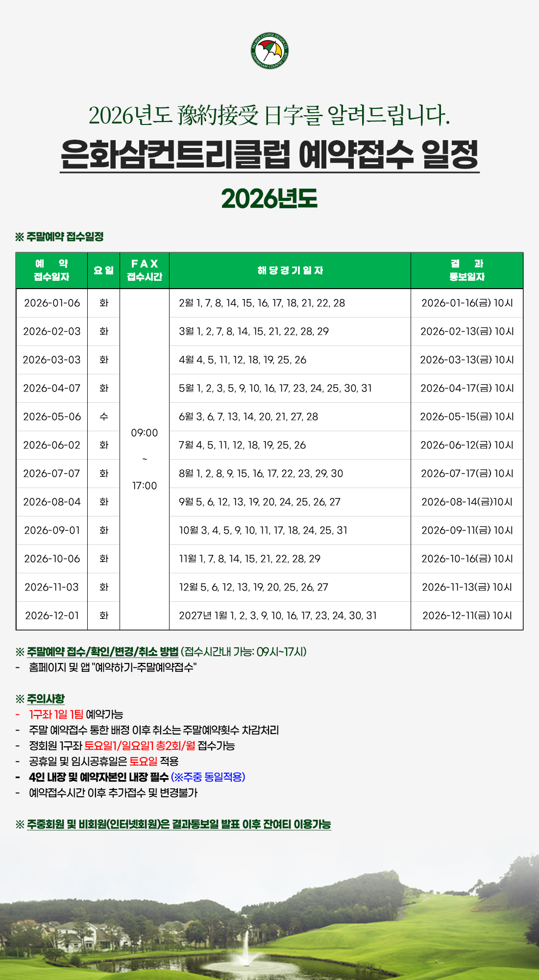 2026년 주말예약 접수 안내